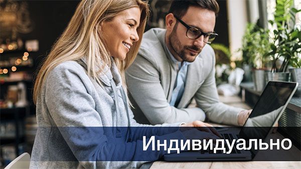 Индивидуальное обучение - это очное или онлайн обучение, адаптированное лично для Вас. Подходящий вариант для тех, кто хочет получить конкретные знания в комфортных условиях: Вы учитесь по специально составленному учебному плану и получаете только те знания, которые Вам нужны. Вам не нужно подстраиваться под темп группы, ведь все внимание преподавателя посвящено только Вам!